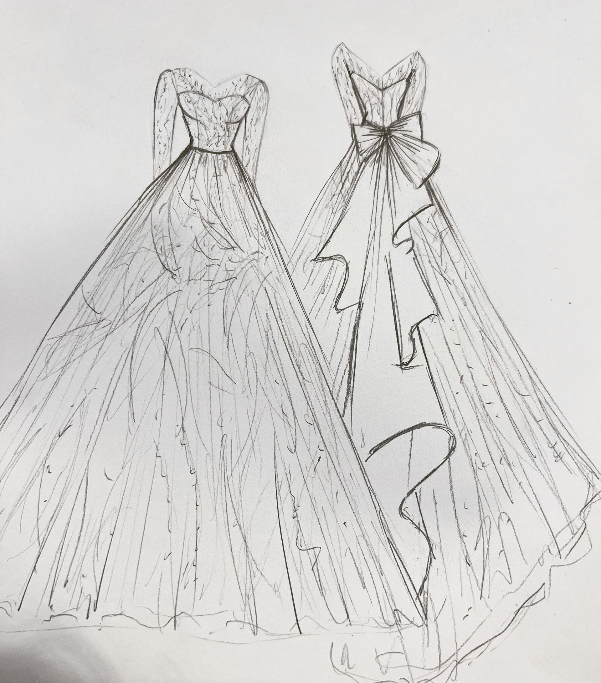Your dress is prepared and presented ready for you to collect before your special day. As a sign of my love and appreciation I gift every individual an original hand drawn illustration of their gown, beautifully framed, and presented to you to signify the end of our dress designing journey together.