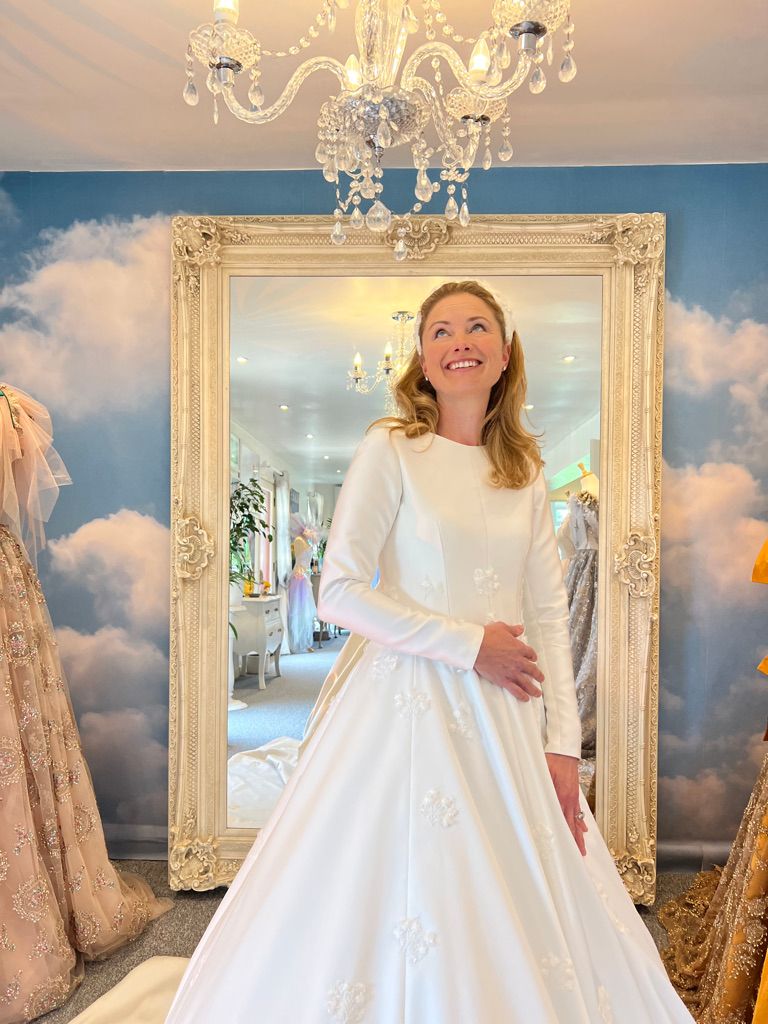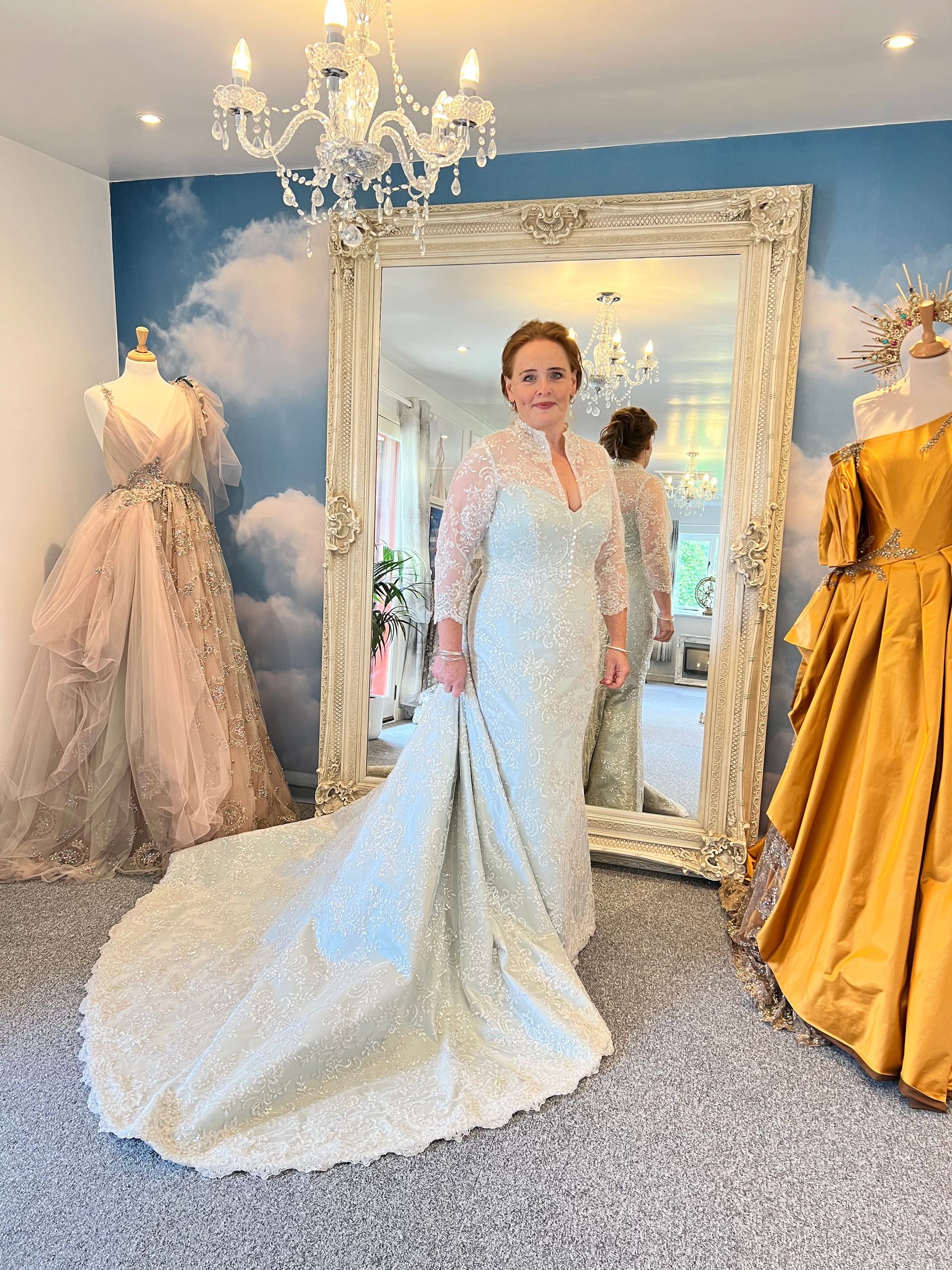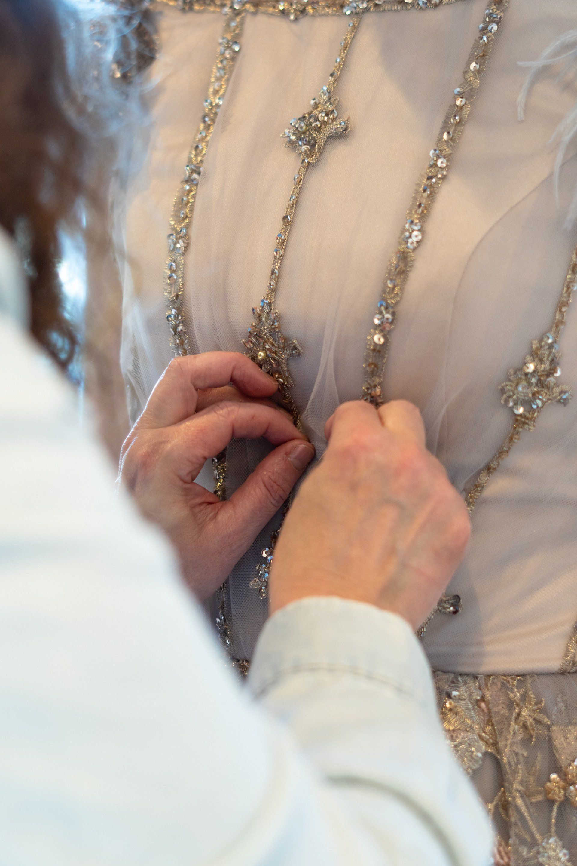 Your dress is finished, all fastenings are added, and the hem and details are complete. It is a chance for you to try on your dress with your accessories, some of which we may have created too. A chance to feel the gown as you walk, sit and perhaps even dance.